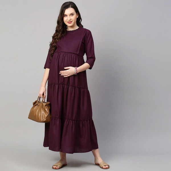 0 review(s) for "Women Purple Solid Maternity Nursing Empire Midi Sustainable Dress"